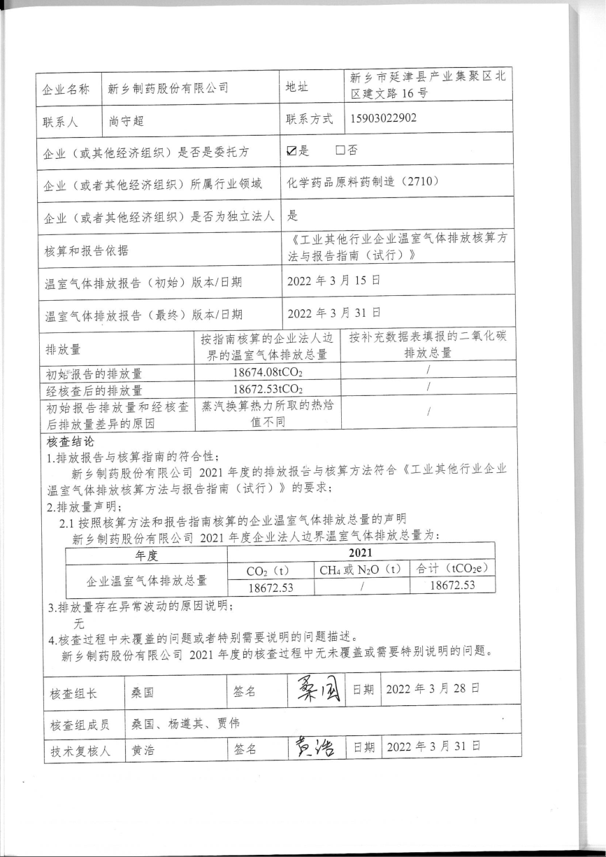 2021年度溫室氣體排放核查報告